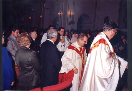 José Tomás Sala, tercer vestit de blanc amb les mans en posició d'oració.