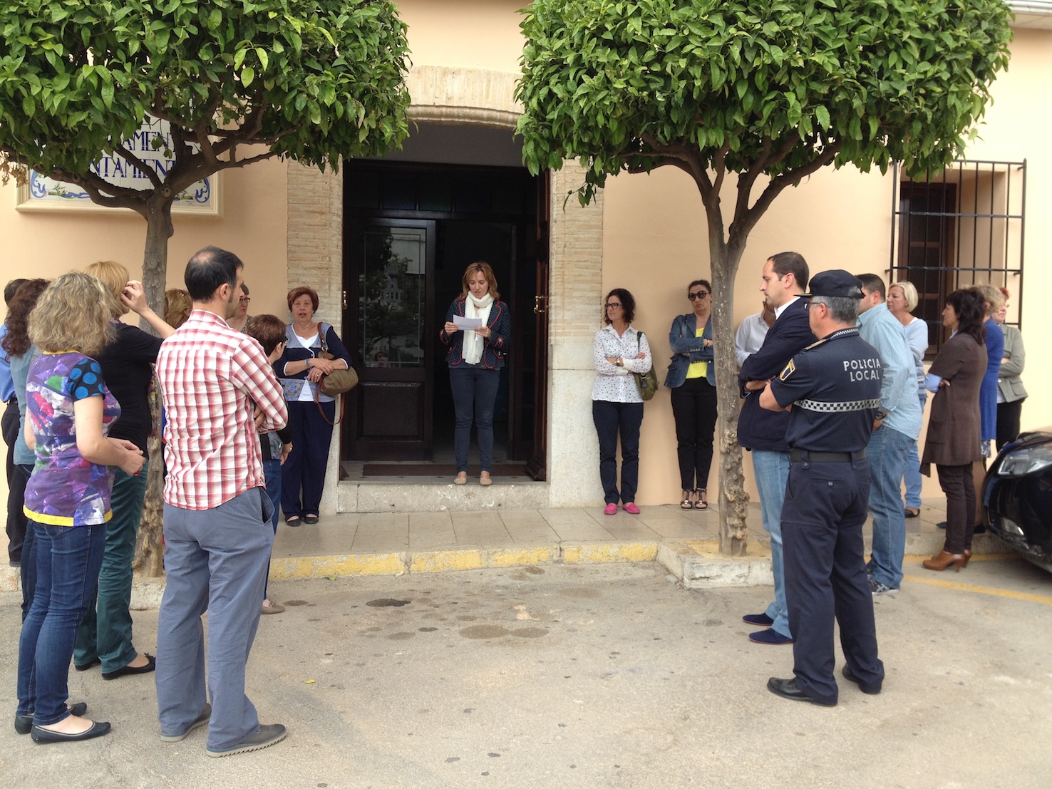 Funcionaris i polítics de l’Ajuntament de Benissa van guardar ahir a les 12.00h un minut de silenci a la plaça del Portal per l’assassinat de la presidenta de la Diputació de LLeó, Isabel Carrasco.