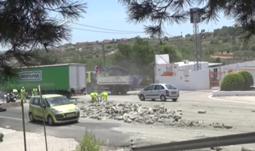 La carretera N-332 s’ompli de sacs de portland a la corba del butà