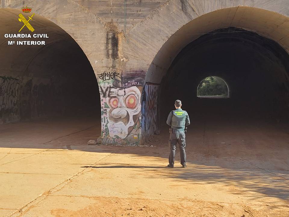 Allí es van trobar diversos camions al llarg del camí, a més d’una barra de so i grans altaveus col·locats en un escenari, tot això a l’interior d’un túnel. A més, van observar nombroses persones reunides amb clars símptomes d’haver consumit alcohol i substàncies estupefaents.
