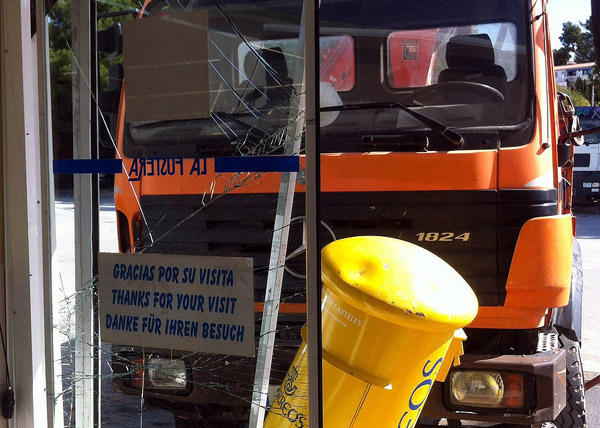 L’esglai va ser considerable. Un camió es va estavellar ahir, a les 8.15h, contra la porta del supermercat de la platja de la Fustera de Benissa. En eixe moment, dos treballadors estaven dins de l’establiment i al costat de l’entrada contra la qual es va encastar el vehicle. La persiana de metall estava, això sí, baixada. Van escoltar el baluern i es van sobresaltar. Fins que no van eixir al carrer no van descobrir el que havia passat. Al camió, que s’utilitza en unes obres que s’estan realitzant a la carretera que uneix Moraira i Calp per la costa, li va fallar el fre de mà. Estava aparcat a uns metres del supermercat. Va agafar una mica de velocitat en un lleuger pendent i es va estavellar contra l’establiment. Una bústia de correus, que va quedar mig arrancada, va parar l’impacte. El supermercat va poder obrir després de retirar-se el camió. Els operaris el van tornar a aparcar on estava, però van col·locar davant i creuada una pala per si el sistema de frenat tornava a fallar.