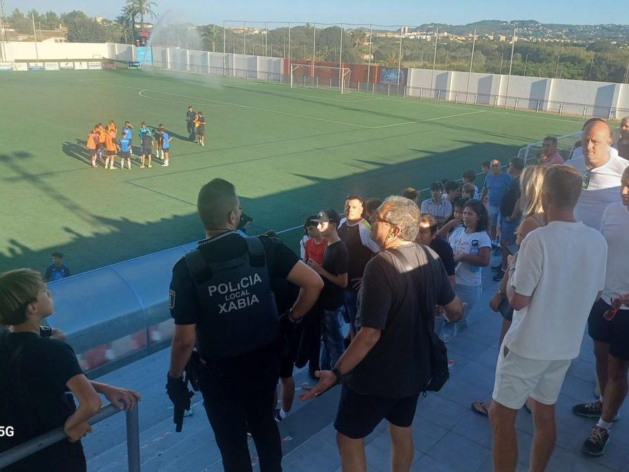 El públic assistent al partit de cadets entre el Xàbia i el Benissa d’aquesta vesprada han sentit por. De sobte, en les graderies, s’ha deslligat una baralla multitudinària entre xics d’entre 14 i 16 anys de Benissa i algun de Calp, el bàndol atacant, i de Xàbia. Els primers anaven vestits amb samarretes negres. Els espectadors han vist com llançaven cascos contra els altres xicons. S’han espantat quan han vist que algun dels atacants portava un matxet.